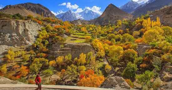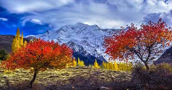 Autumn in Gilgit Baltistan of Pakistan is something to behold. This is the time of year when the trees of poplar, apricot, mulberry, peach, apple, and plum burst forth into a riot of color with hues of orange, rust, and red. The clear and bracing weather offers the best view of the surrounding mountains. One can find pink, white, red, yellow, blue flowers, dancing, everywhere in the northern areas during the autumn season.